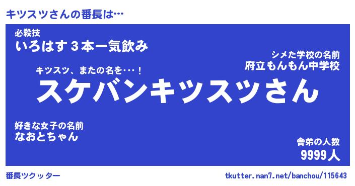 | 意味不明あだ名 | 『ペロリンキツスツ』『永久保存キツスツ』 |