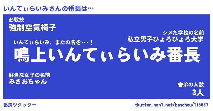 | ピコ太郎風あだ名 | 『イコ五郎』『ピイ太郎』『イン太郎』 |
