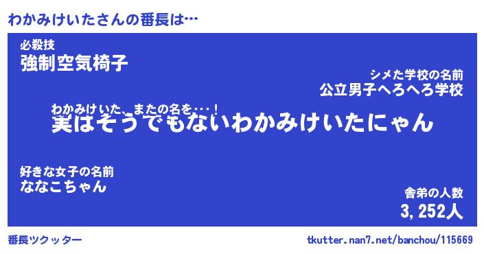 | 肩書あだ名 | 『わかみけいた社長』『わかみけいた教頭』 |