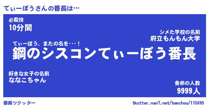 | ヒーロー風カッコイイあだ名 | 『スーパーティーボウ』『炎刃騎士ティ』 |