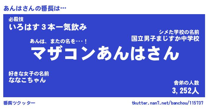| 肩書あだ名 | 『あんは社長』『あんは大統領』 |