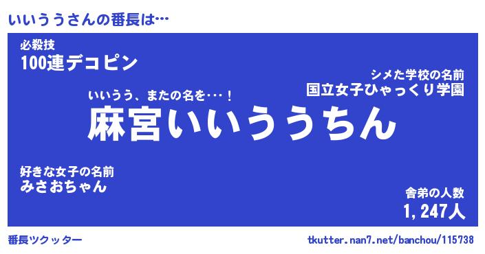 | 意味不明あだ名 | 『ペロリンいいうう』『永久保存いいうう』 |