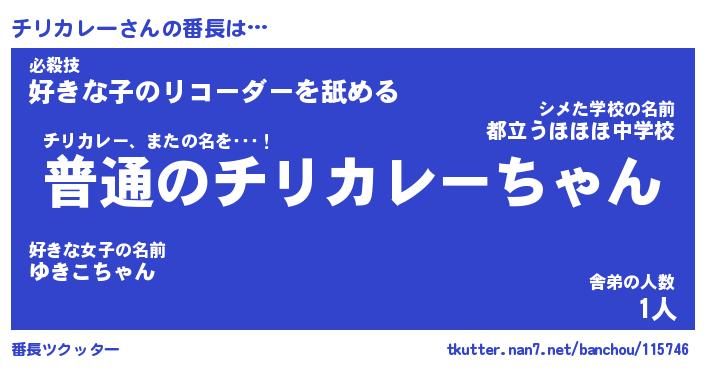 | ヒーロー風カッコイイあだ名 | 『スーパーチリカレー』『黄金騎士チリ』 |