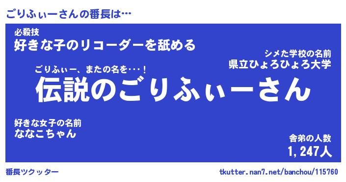 | ファンタジー風あだ名 | 『ゴリフェル』『エターナルゴリフィーー』 |