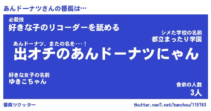 | 肩書あだ名 | 『あんドーナツCEO』『あんドーナツ担任』 |