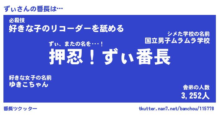 | 2回繰り返すあだ名 | 『ずぃずぃ』『ずずぃぃ』『ぬらぬら』 |