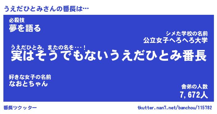 | ポケモン風あだ名 | 『ウエチュウ』『ウエダダネ』 |