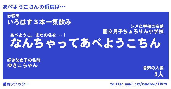 | 肩書あだ名 | 『あべようこ御曹司』『あべようこ大統領』 |