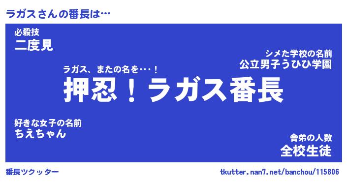 | ポケモン風あだ名 | 『ラガチュウ』『ラガスダネ』 |