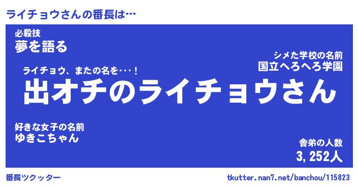 | ヒーロー風カッコイイあだ名 | 『スーパーライチョウ』『幻影騎士ライ』 |