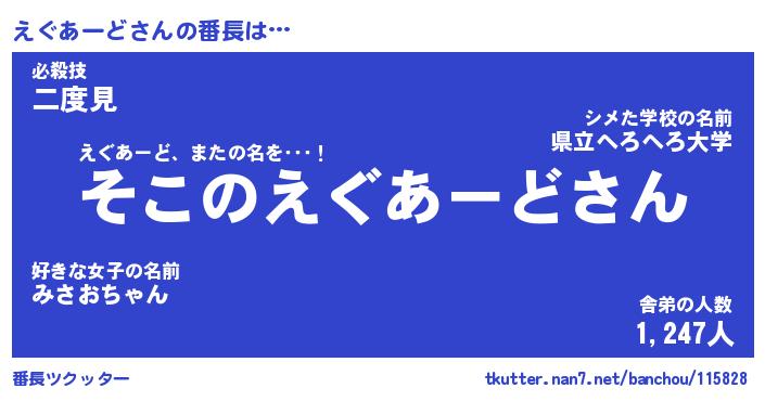 | 2回繰り返すあだ名 | 『えぐえぐ』『ええぐぐ』『にたにた』 |