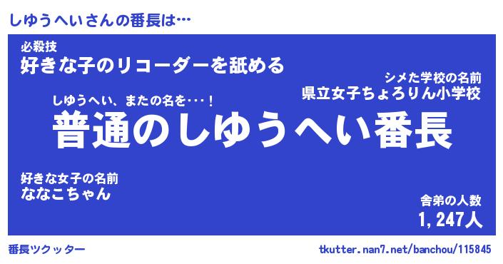 | ファンタジー風あだ名 | 『シユフェル』『エターナルシユウヘイー』 |