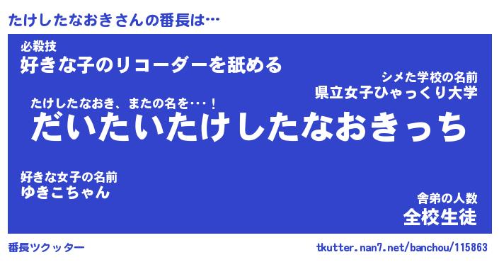 | 2回繰り返すあだ名 | 『たけたけ』『たたけけ』 |