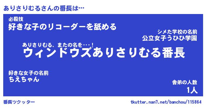 | ヘコむあだ名 | 『ありにゅー』『酢こんぶ』『ありお』 |