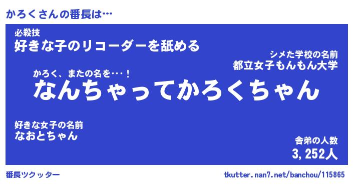 | 意味不明あだ名 | 『ペロリンかろく』『かろくフォーエバー』 |