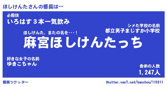 | 肩書あだ名 | 『ほしけんた御曹司』『ほしけんた大統領』 |