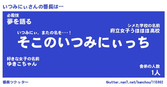 | 肩書あだ名 | 『いつみにぃ社長』『いつみにぃ総理大臣』 |