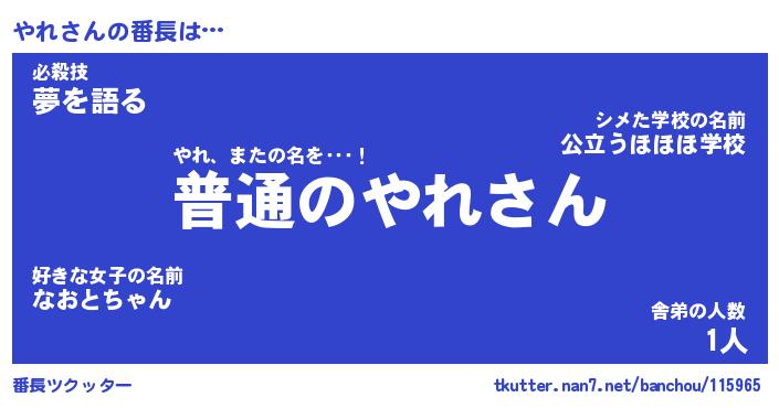 | ヒーロー風カッコイイあだ名 | 『スーパーヤレ』『ウルトラやれマン』 |