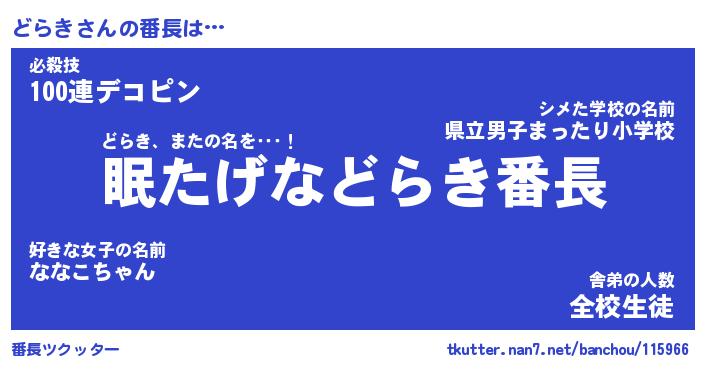 | ヘコむあだ名 | 『どらもー』『つくし』『どらっぺ』 |
