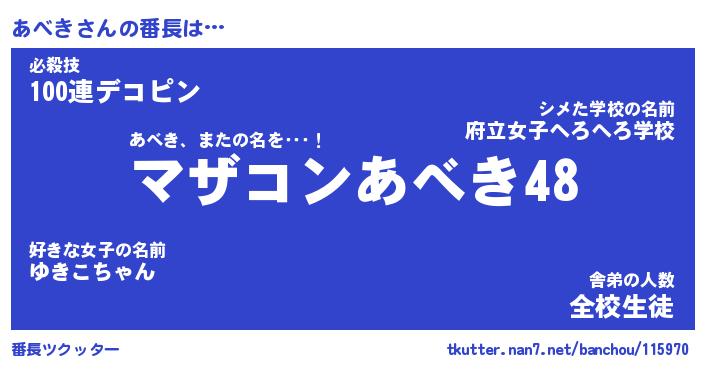 | 意味不明あだ名 | 『ペロリンあべき』『あべきフォーエバー』 |