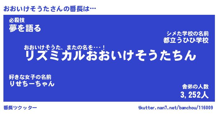 | 意味不明あだ名 | 『ペロリンおおいけそうた』 |