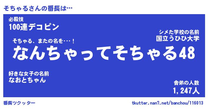 | 意味不明あだ名 | 『ペロリンそちゃる』『永久保存そちゃる』 |