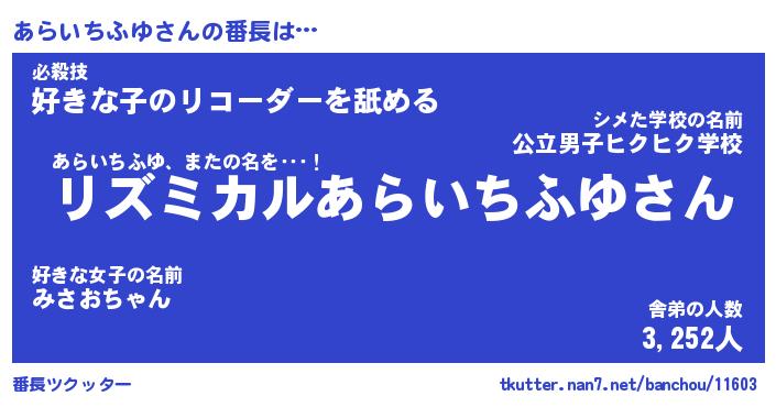 | 肩書あだ名 | 『あらいちふゆ御曹司』 |
