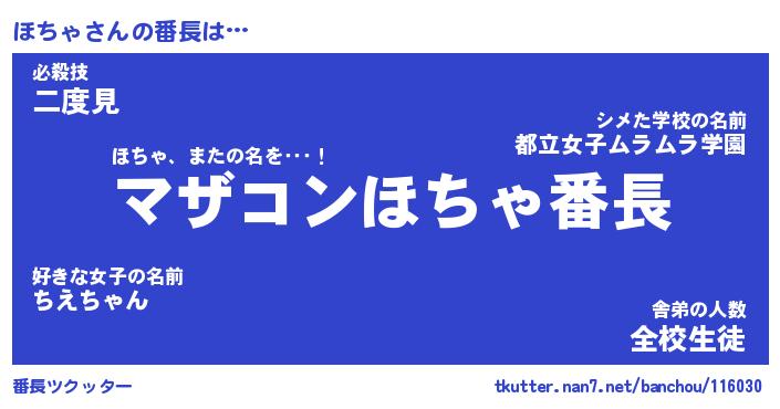 | 意味不明あだ名 | 『ペロリンほちゃ』『ほちゃフォーエバー』 |