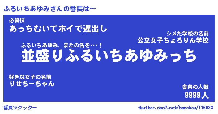 | 伝説のあだ名 | 『不死鳥のスナイパーふるいちあゆみ』 |