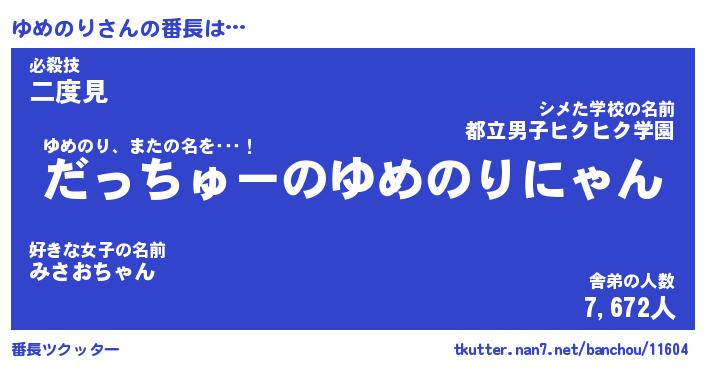 | 意味不明あだ名 | 『ペロリンゆめのり』『永久保存ゆめのり』 |