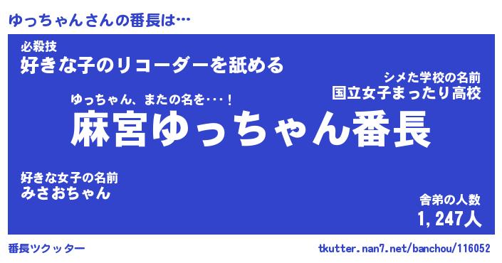 | ヘコむあだ名 | 『ゆっふぇ~』『豆乳』『ゆっお』 |