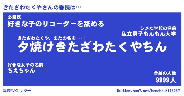 | 伝説のあだ名 | 『封印されしスナイパーきたざわたくや』 |