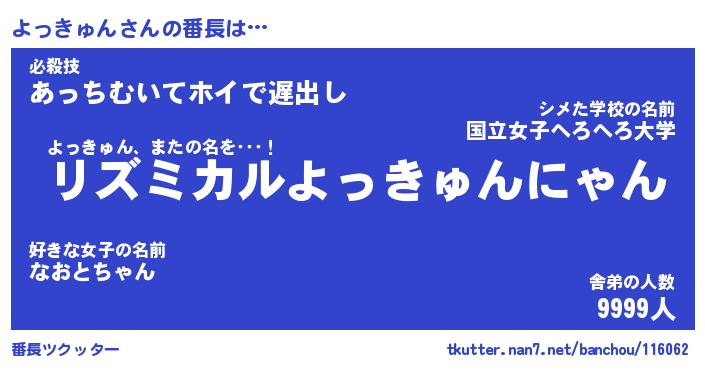 | 意味不明あだ名 | 『ペロリンよっきゅん』 |