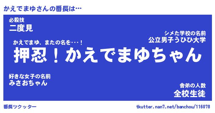 | 肩書あだ名 | 『かえでまゆ御曹司』『かえでまゆ大統領』 |