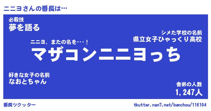 | ファンタジー風あだ名 | 『ニニフェル』『エターナルニニヨー』 |