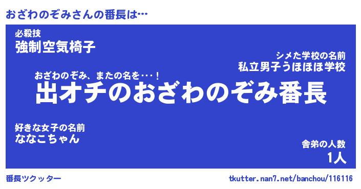 | ピコ太郎風あだ名 | 『オコ次郎』『ピオ三郎』『オザ四郎』 |
