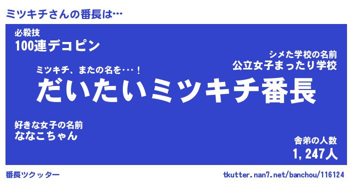 | 意味不明あだ名 | 『ペロリンミツキチ』『永久保存ミツキチ』 |