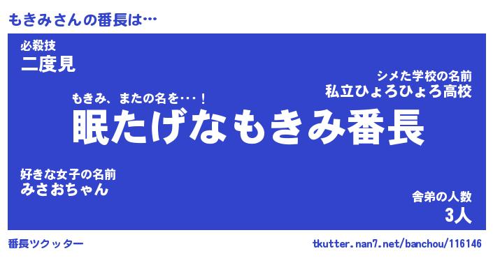 | ヘコむあだ名 | 『もきにー』『レバニラ』『もきっ子』 |