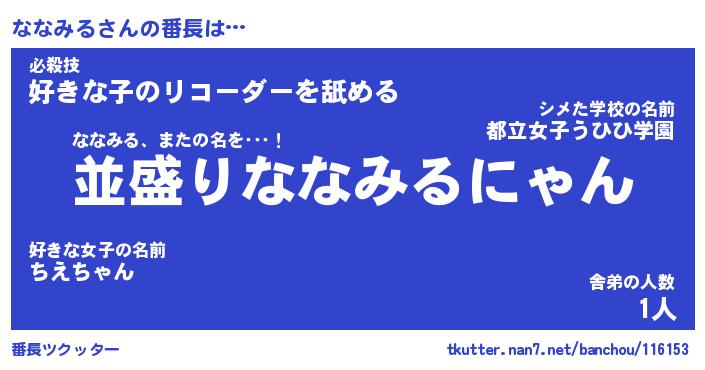 | 意味不明あだ名 | 『ペロリンななみる』『永久保存ななみる』 |
