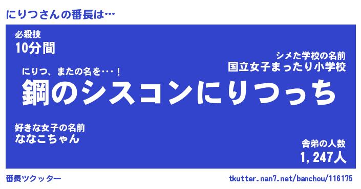 | ヒーロー風カッコイイあだ名 | 『スーパーニリツ』『ウルトラにりつマン』 |