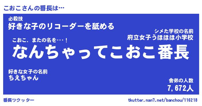 | 伝説のあだ名 | 『伝説のスナイパーこおこ』 |