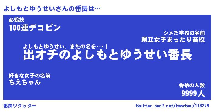 | ピコ太郎風あだ名 | 『ヨコ八郎』『ピヨ四郎』『ヨシ五郎』 |