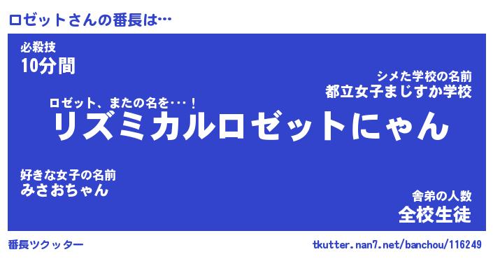 | 意味不明あだ名 | 『ペロリンロゼット』『永久保存ロゼット』 |
