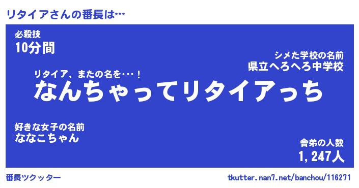 | ファンタジー風あだ名 | 『リタフェル』『エターナルリタイアー』 |