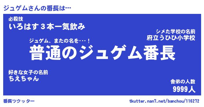 | ポケモン風あだ名 | 『ジュチュウ』『ジュゲダネ』 |