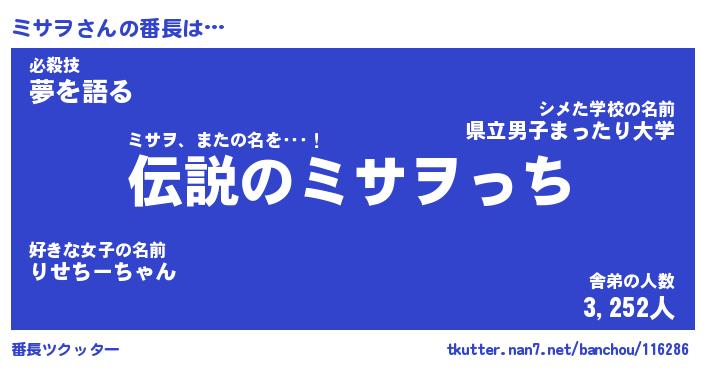 | ヒーロー風カッコイイあだ名 | 『スーパーミサヲ』『ウルトラミサヲマン』 |