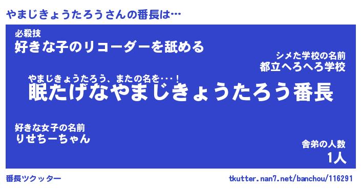 | 肩書あだ名 | 『やまじきょうたろう御曹司』 |