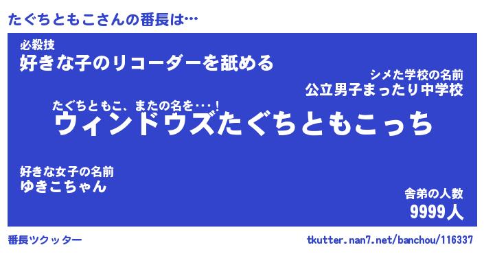 | 肩書あだ名 | 『たぐちともこ店長』『たぐちともこ班長』 |