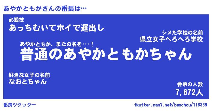 | 肩書あだ名 | 『あやかともかCEO』『あやかともか担任』 |