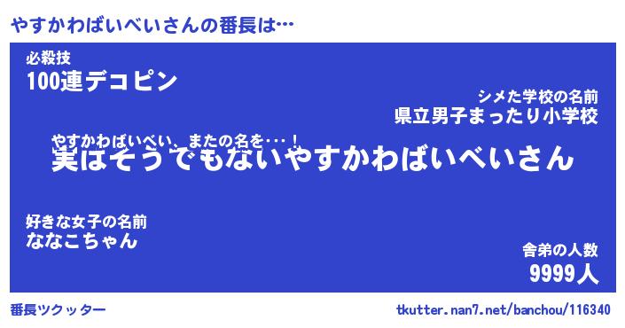 | ヒーロー風カッコイイあだ名 | 『スーパーヤスカワバイベイ』 |